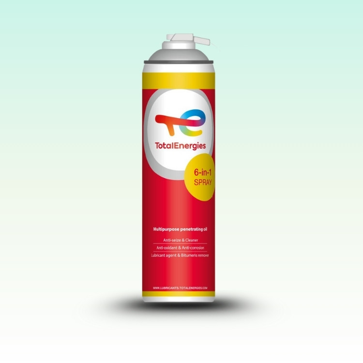 Kies TotalEnergies 6-IN-1 SPRAY voor snelle reiniging, betrouwbare smering en duurzame bescherming bij onderhoud, montage en dagelijkse technische toepassingen.